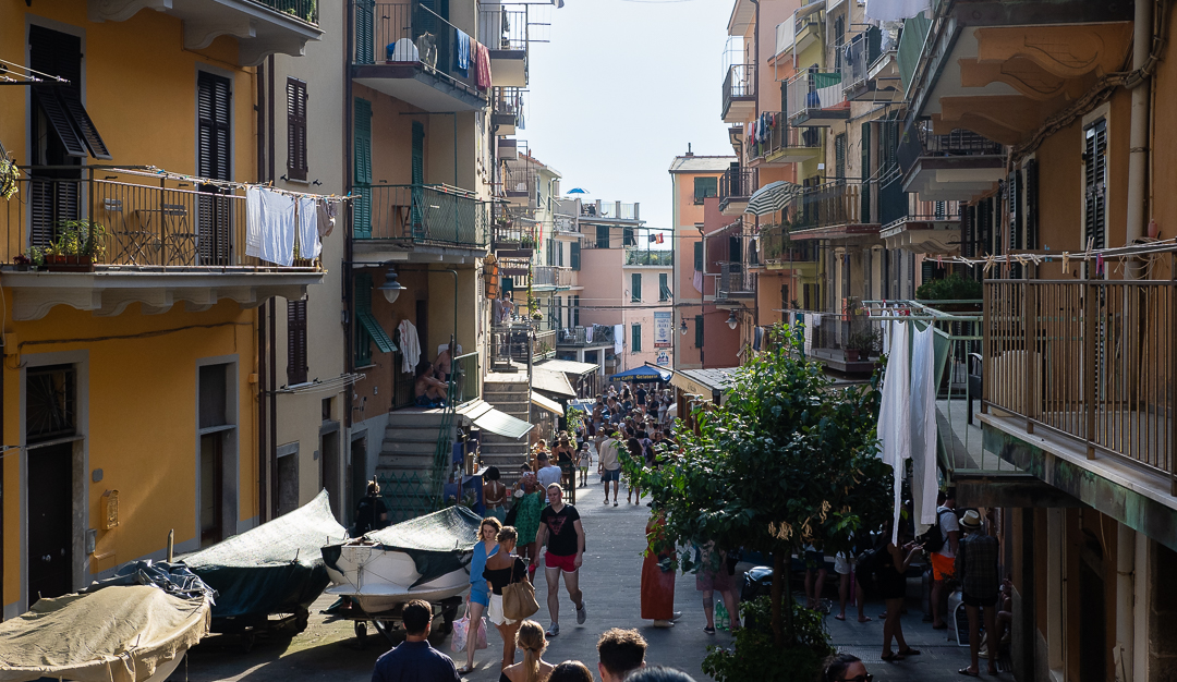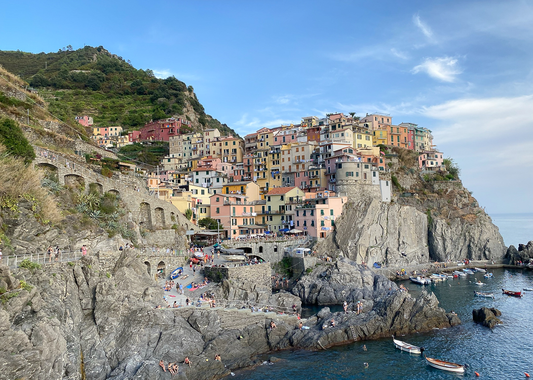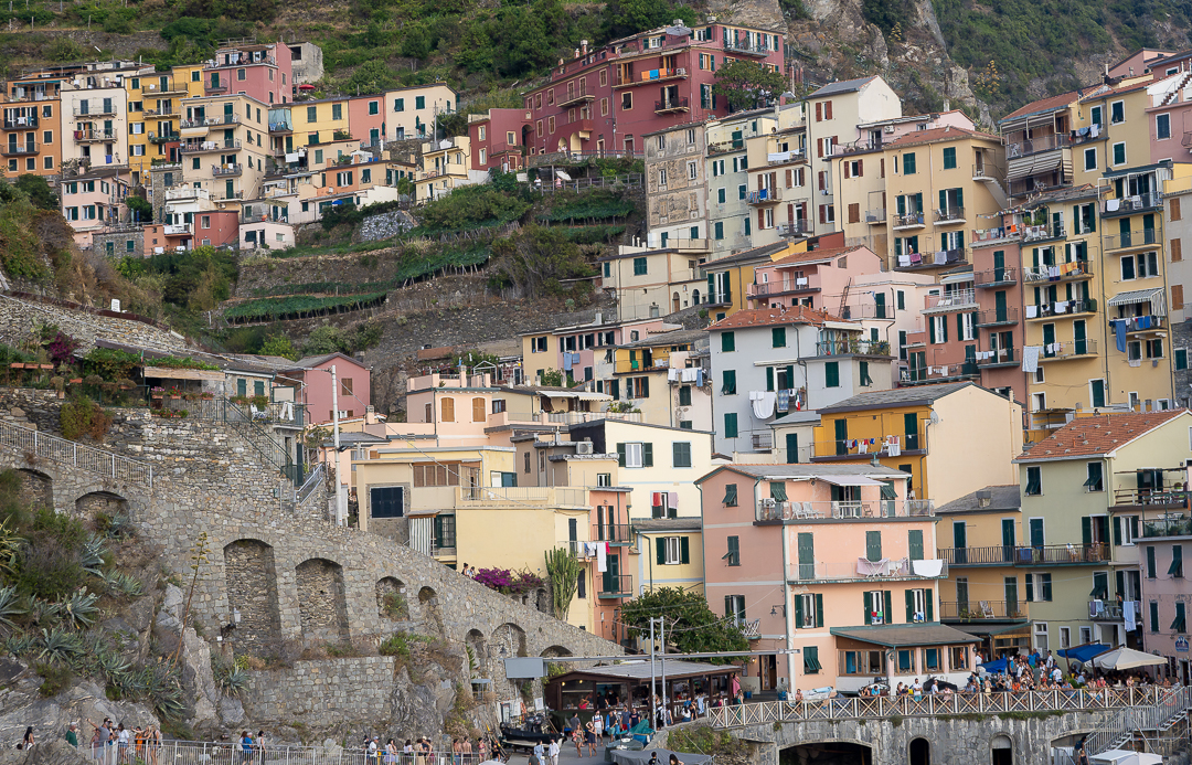 Unlike Corniglia which is a hilltown on top of the cliff, Manorola literally drapes over and clings onto the cliffs 70 meters above the sea.