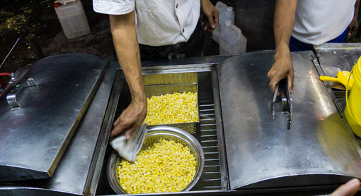 Hand-plucked corn, steamed and then roasted.