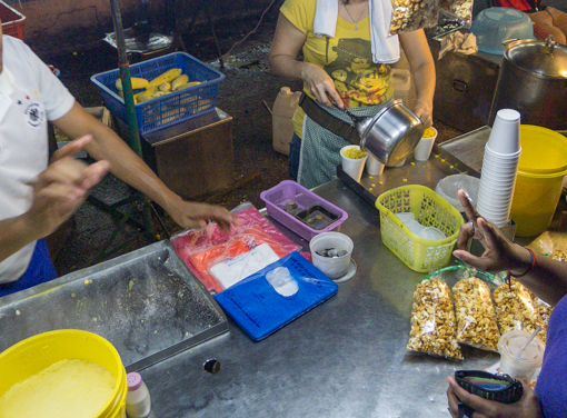 This guy was making a gigantic version of the pancake – “PJ pan cake”. The base is paper thin and crispy.