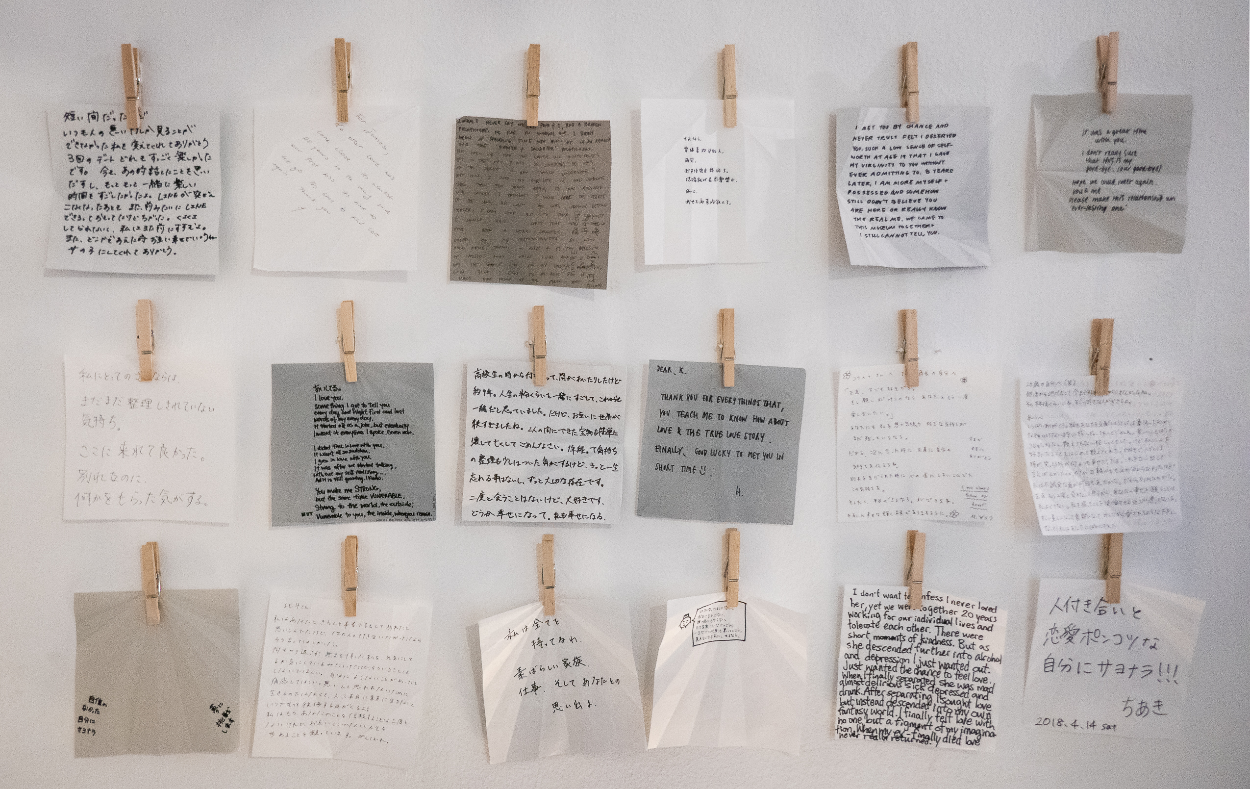 In 2017, the project collected confessions from Tokyo and visitors were invited to shape their “Goodbyes” into paper planes.