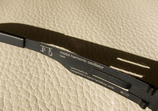 The model is named Harmonic Oscillator and there is even a little diagram etched on the inner side of the frame to illustrate the concept. I have no idea how this concept is connected with the design of this frame. My first pair was named “roman” and the second pair was named “hotel neutor”.