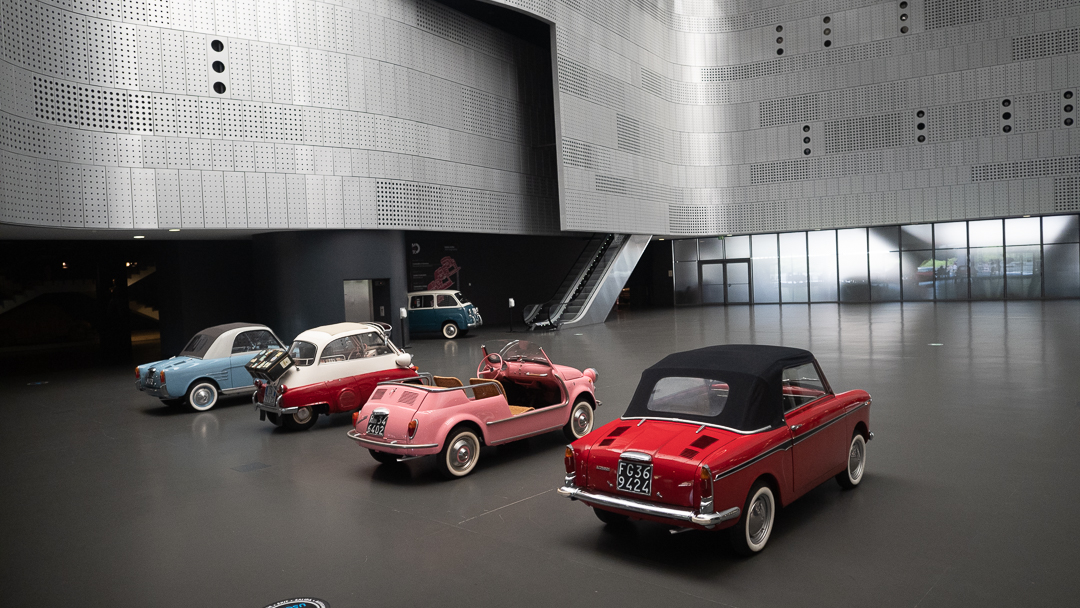 Four mid-century classics were placed in the lobby of the museum to welcome visitors. They were small and charming, like toy cars, and can really be described as cute (not a term generally used to describe cars).