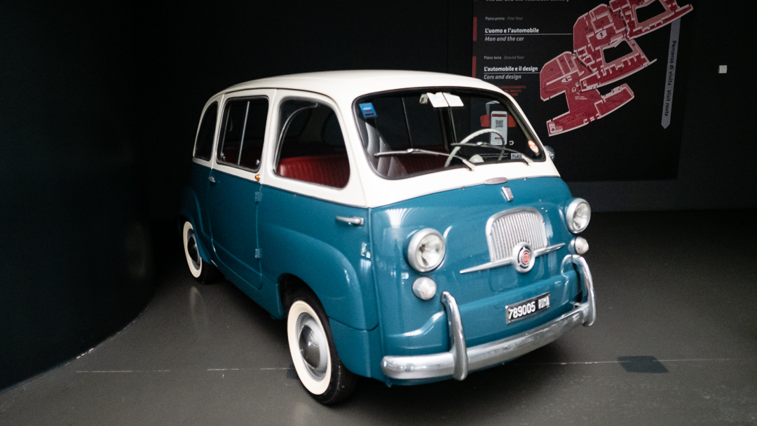 The museum is focusing only on passenger cars and race cars. There were no other types of vehicles on display, except this FIAT 600 Multipla passenger minivan.
