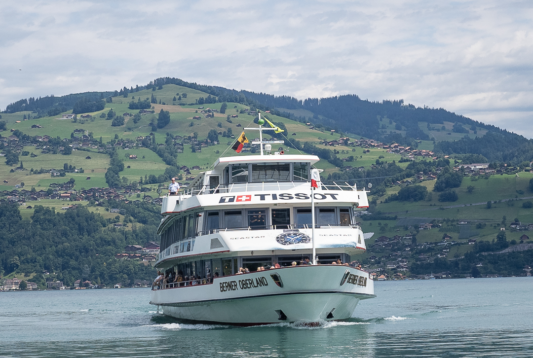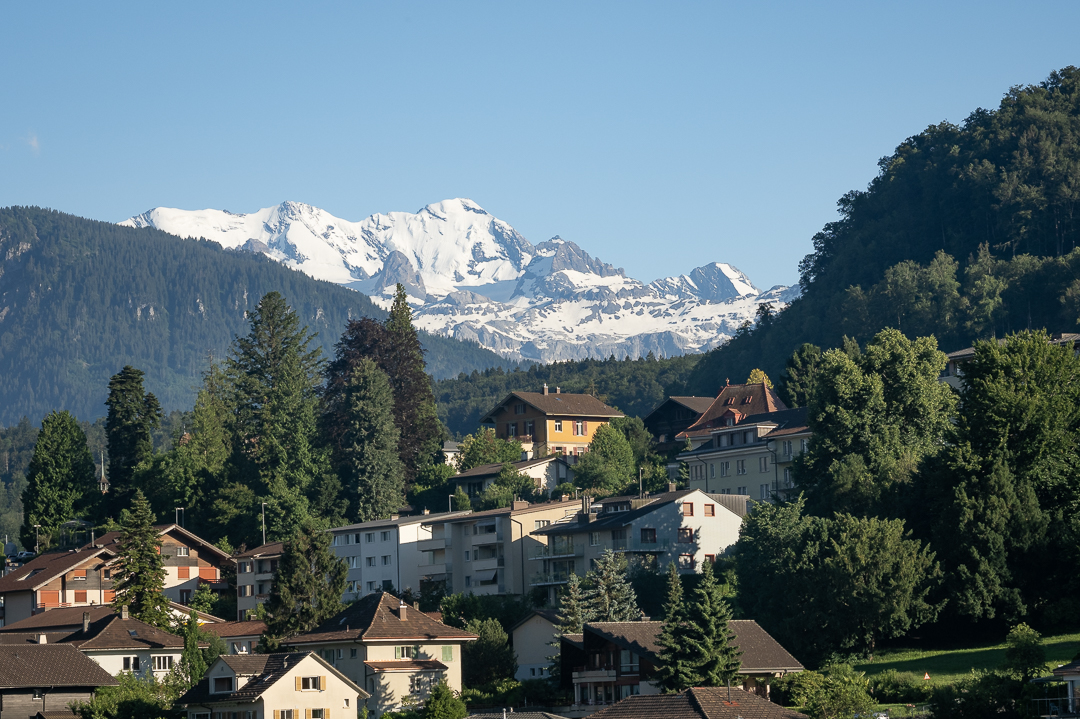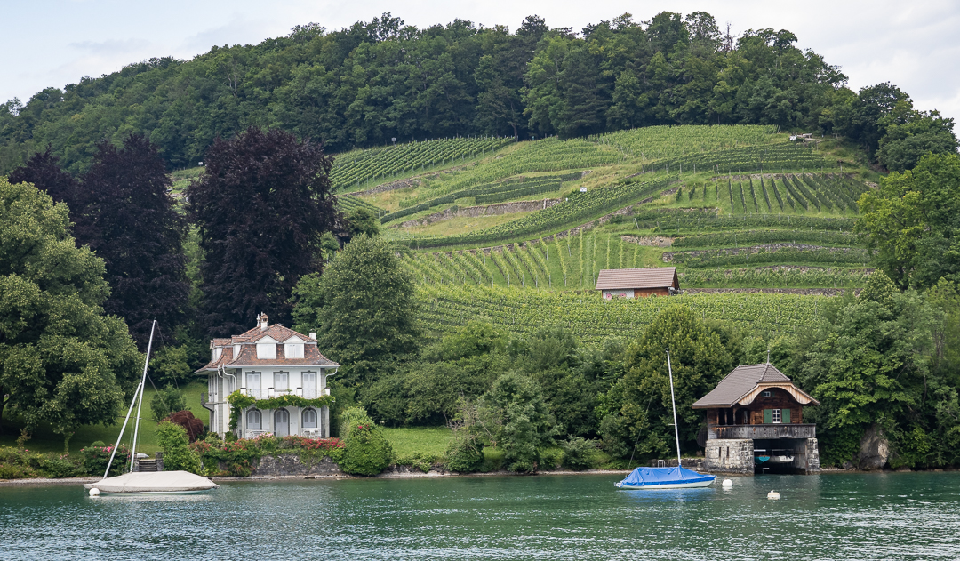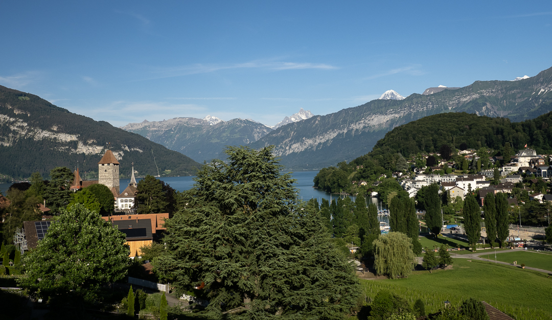 We also had a good view of the mountain range lying behind Spiez, which comprises the famous peaks of Eiger, Mönch and Jungfrau ( … but we could not identify them individually from where we were).