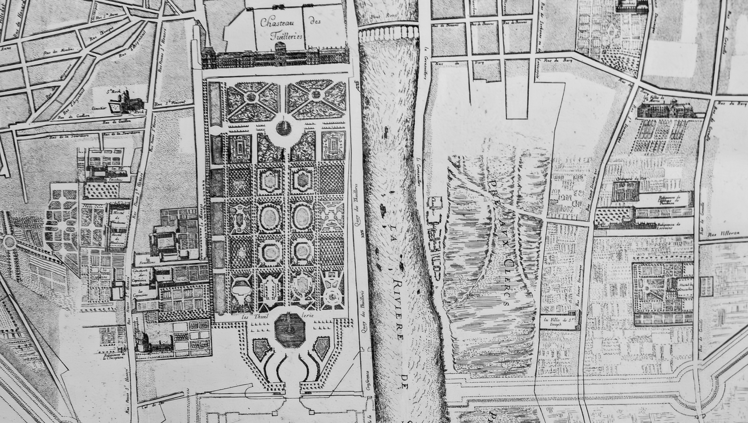 Designed in 1565 for Catherine de’Medici, the Tuileries Gardens were composed initially of a checkerboard of flower beds and a grotto. In 1664, rows of trees were added to line the Grande Allée. To the West, the extension of the garden resulted in a view beyond the limits of the 17th century city, which would later take the name of the Champs-Élysées.