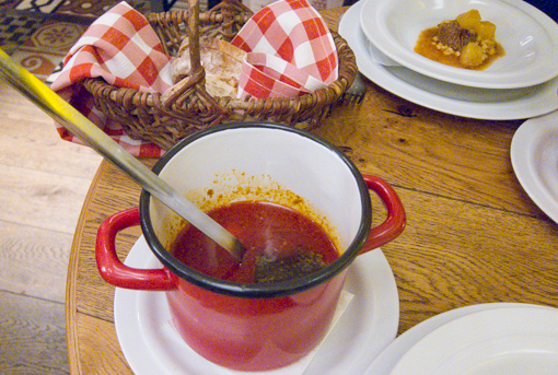 Pest-Buda Vendéglő (Pest-Buda Inn) is located on the Buda side of the city. It is described in a local guidebook as the place to try traditional Hungarian dish made according to grandma’s recipe.