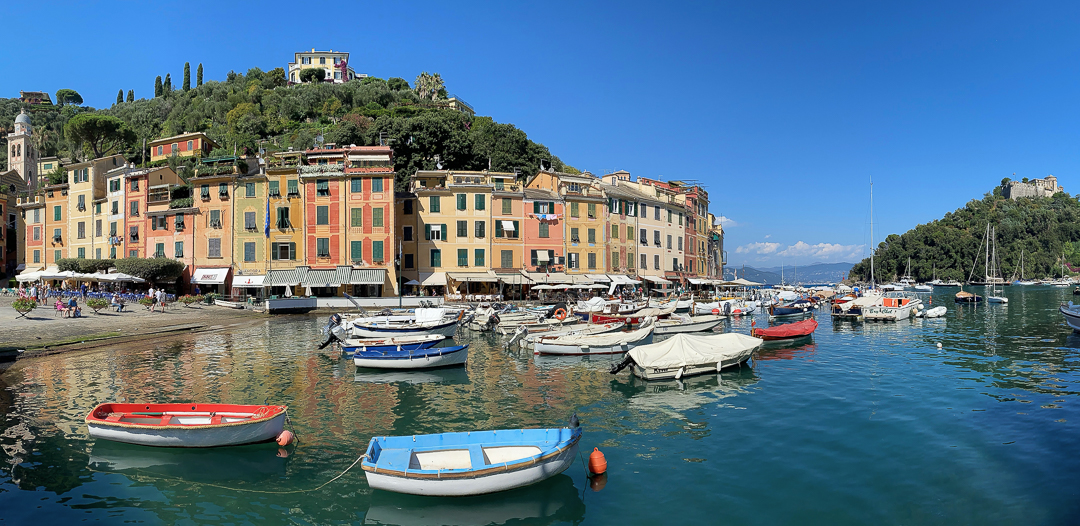 Portofino is a picturesque fishing village with a protected harbor on the Italian Riviera. In the 19th century, first British and then other European aristocrats started to visit Portofino. Artists, writers and celebrities of the 20th century (like Elizabeth Taylor, Humphrey Bogart, Frank Sinatra, Ernest Hemingway, and Pablo Picasso) made this enchanting place their summer retreat. By 1950’s, tourism had replaced fishing as the main source of income.