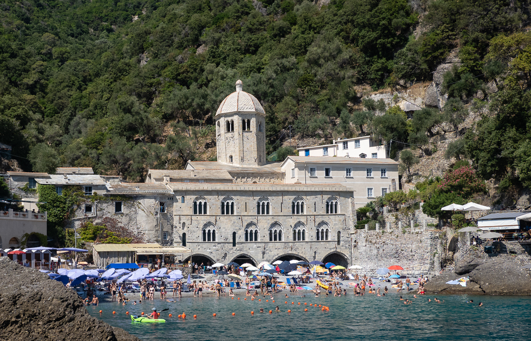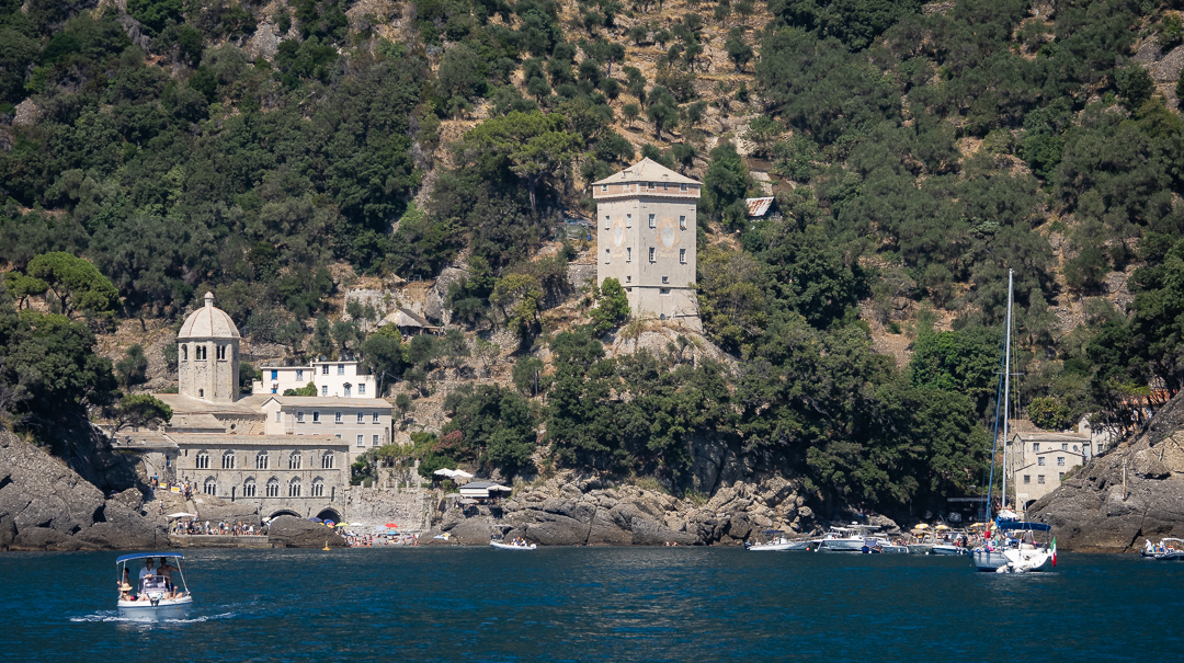 We made a brief stop at San Fruttuoso, a small village with a Benedictine abbey, situated 5 km from Portofino, accessible only by boat or on foot. We saw first a small tower built in the 1500’s to defend against pirates coming from North Africa.