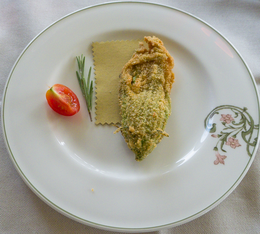 We ordered the degustation menu. Our amuse bouche was deep-fried zucchini flower.