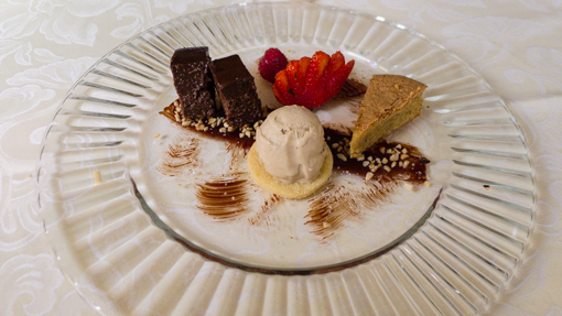 Hazel nut is a major product of the area – Nutella was created in neraby Alba. Every thing on this plate is made with the nut !