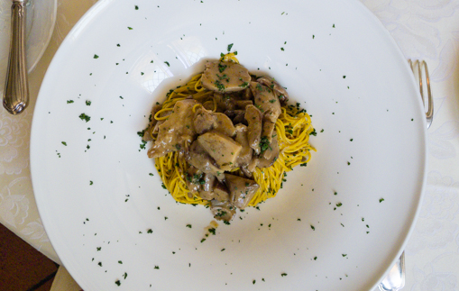 Tajarin funghi porcini (Homemade egg pasta with porcini mushroom ragout) – Tajarin is a local specialty – spaghetti-like but made with eggs – a bit like Chinese egg noodel