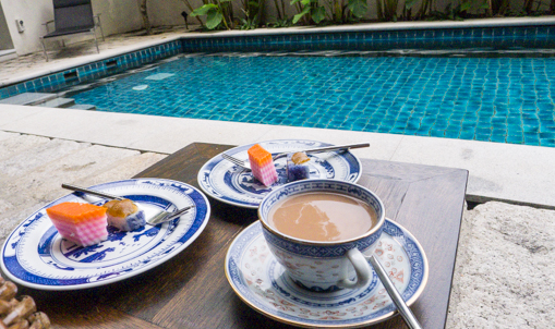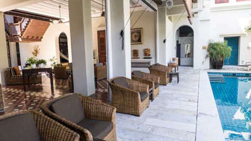 Behind the reception is a lounge area and a lap pool. On a hot day, the water is simply irresistible.