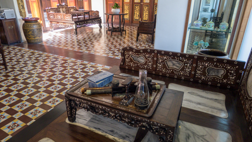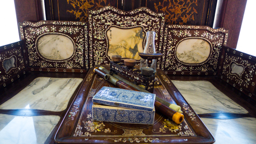 They have even laid out antique opium paraphernalia to complete the picture.