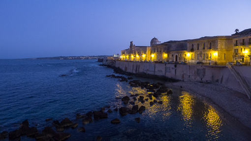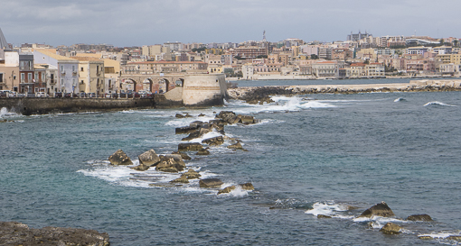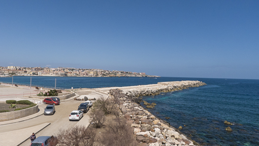 On the east side of the island, one can see the city of Siracusa in a distance.