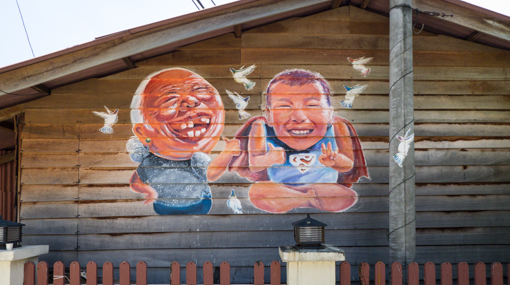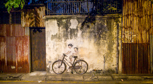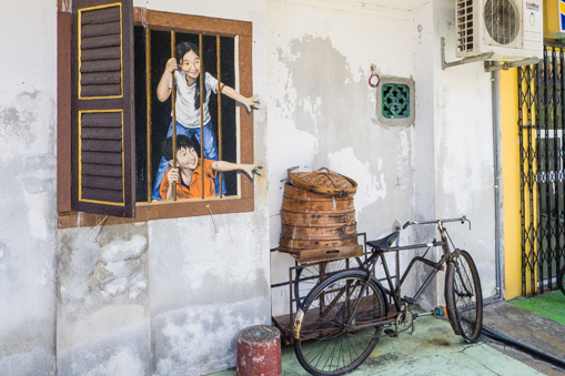 It is not clear how it all started in Georgetown. According to a leaflet put out by the tourism board, several pieces were the work of a Lithuanian student – Ernest Zacharevic – who is an Honors student from Middlesex University in England (and not some punk, disaffected youth, after all this is being endorsed by the local authority).