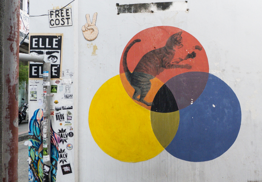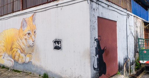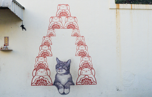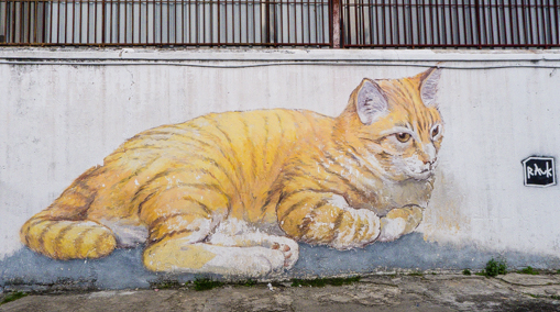 Like cute videos on the internet, cats seem to be a popular subject depicted on the walls here.