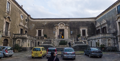 Towards the end of our trip in Sicily, we spent a night in Catania before catching an early morning flight home. Relative to Taormina or Siracusa (including Ortigia), Catania is a much bigger urbanized city and looked a bit gray and tired. We wandered around looking for a sushi restaurant near the port and found this point of interest (as noted in our guidebook), Palazzo Biscari, quite accidentally.
