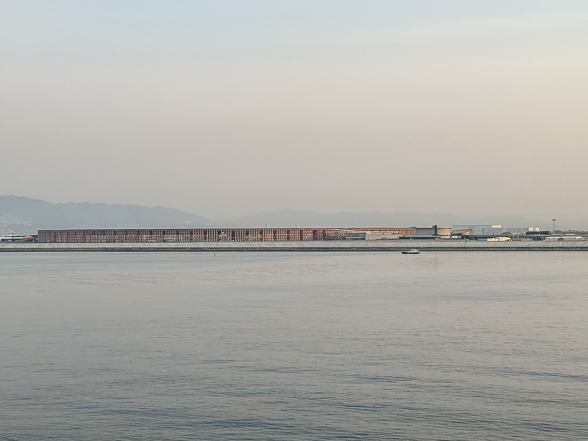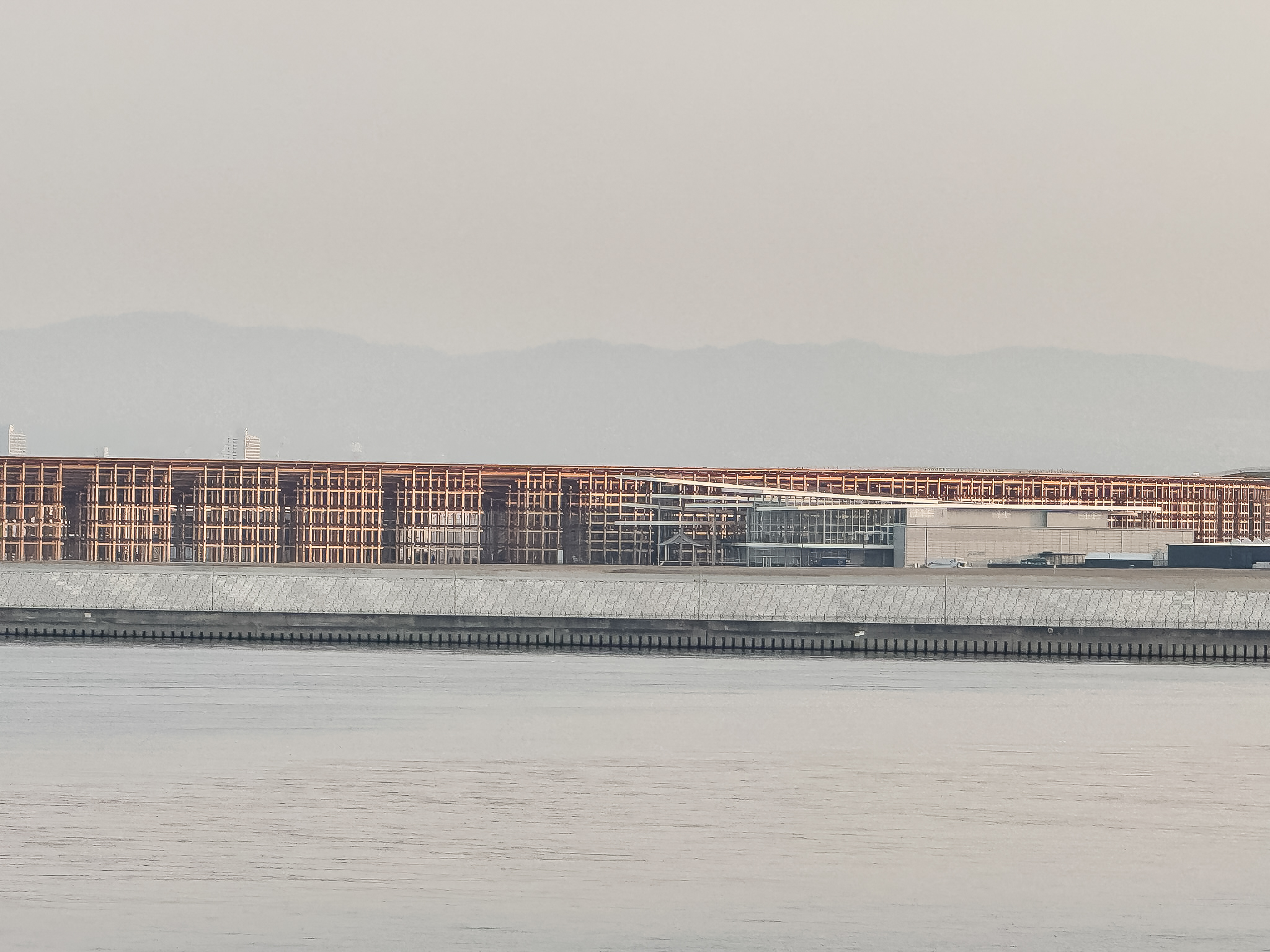 Our first glimpse of Expo 2025 was the Grand Ring (大屋根リング). We saw the Grand Ring from Osaka Bay when we were on a Sunflower cruise (the Kurenai) sailing from Beppu to Osaka. It was around 6:30am when the photo was taken.