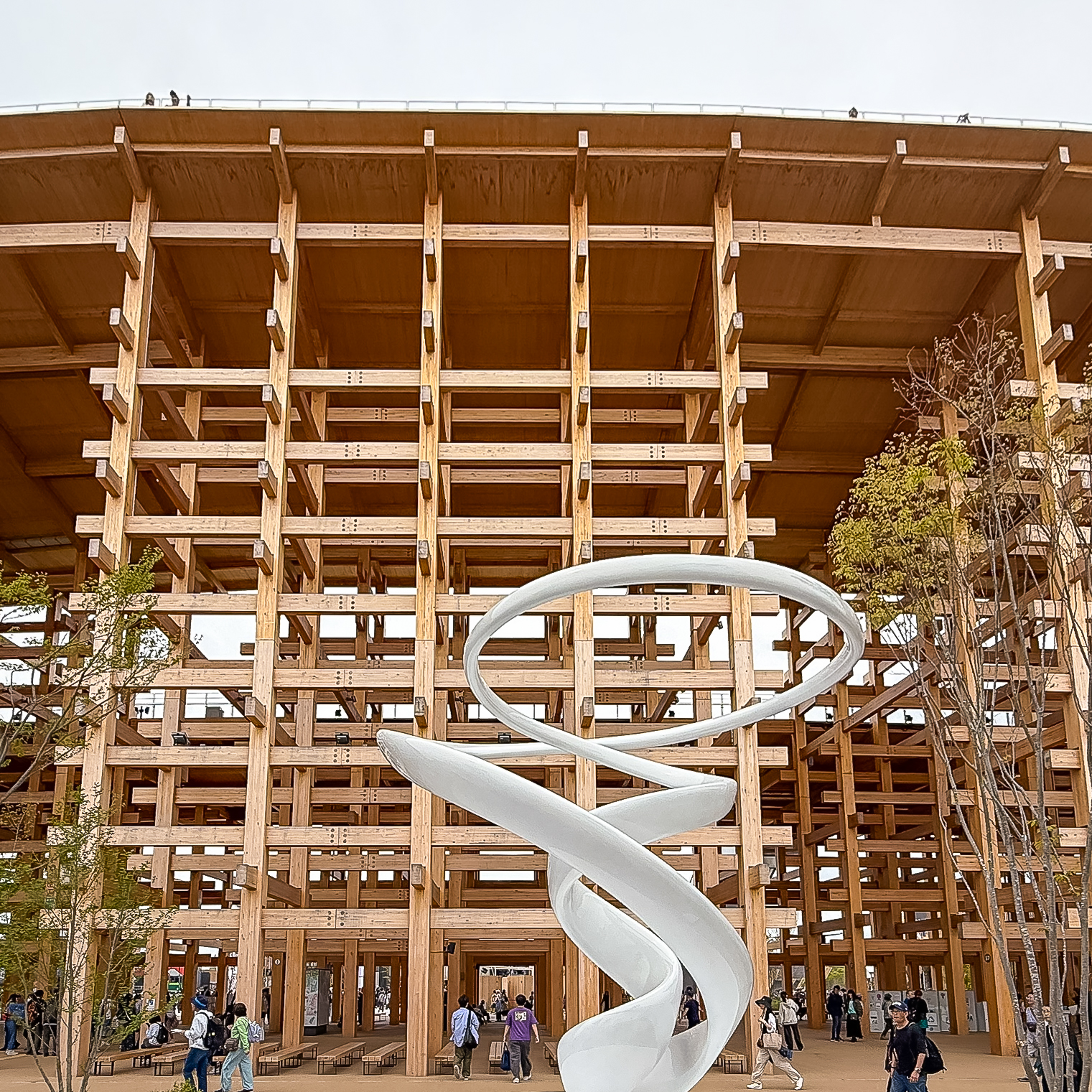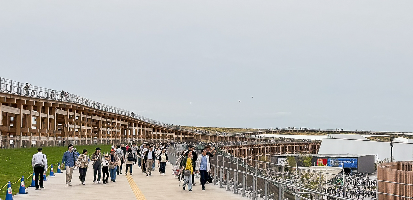 While at Expo 2025, the Grand Ring quickly became our go-to refuge, meeting and resting spot. We especially appreciated the abundance of benches—one of the few places we could take a break without waiting in line, unlike the busy pavilions. Its wide canopy shielded us effectively from both the rain and the sun, yet letting in a breeze from Osaka Bay providing some comfort during our 3-day, 9-hour per day visit.