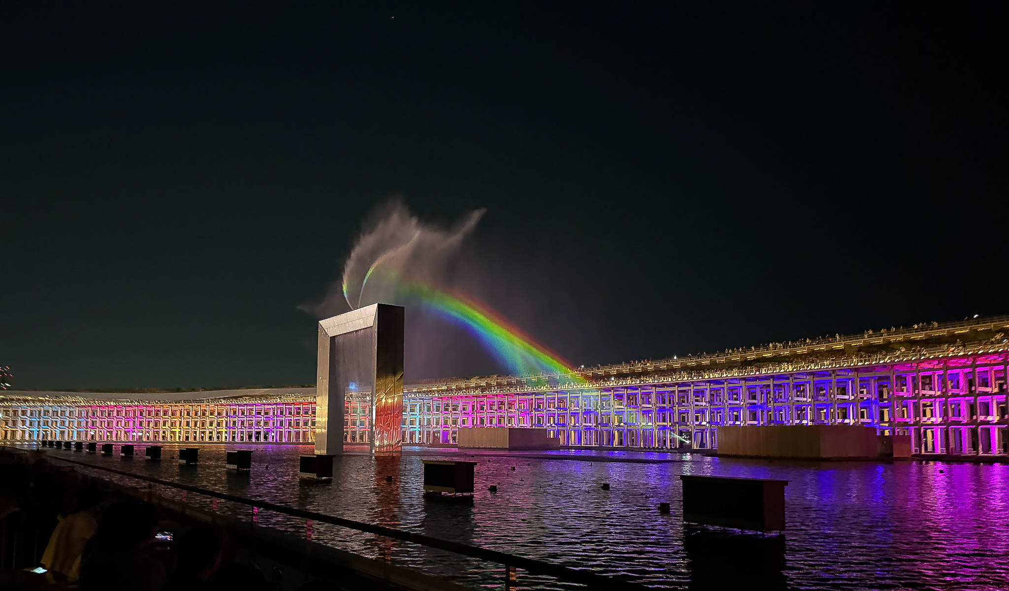 It provided a dramatic backdrop for the “Midnight Rainbow” water and laser light show, and from the elevated walkway, visitors could enjoy a unique vantage point to view the show from the opposite side.