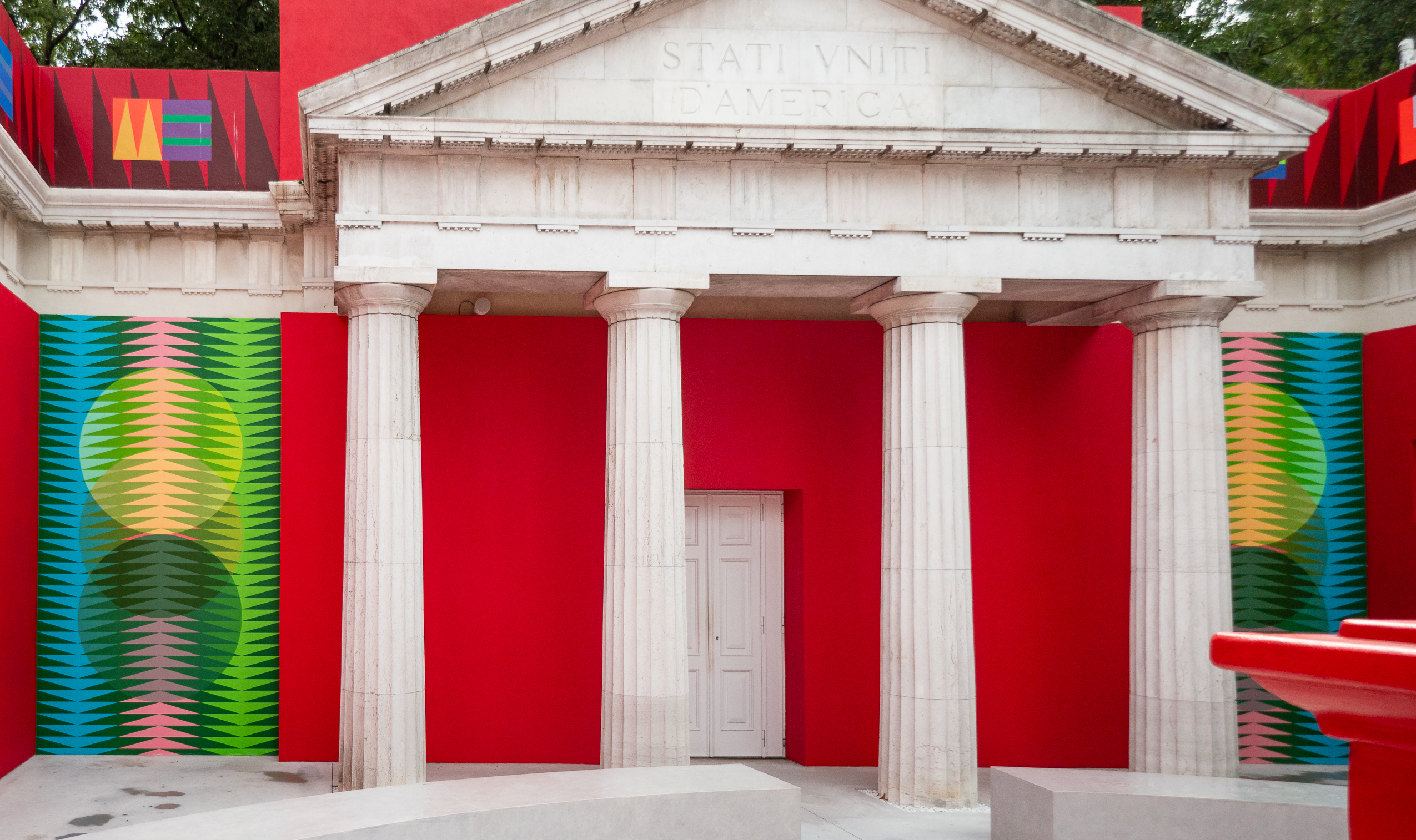 Continuing with Venice… like most visitors of the Biennale, we started at the Giardini where many countries presented commissioned artworks in their respective national pavilions. And it was hard to miss the United States pavilion for its eye-catching technicolor exterior and red pedestals.