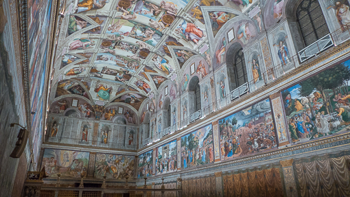 The highlight of the tour is the Sistine Chapel, the last of the 54 halls, the Musei being one of the largest in the world. The papal chapel was built within the Vatican between 1477 and 1480 by Pope Sixtus IV, for whom the chapel is named.