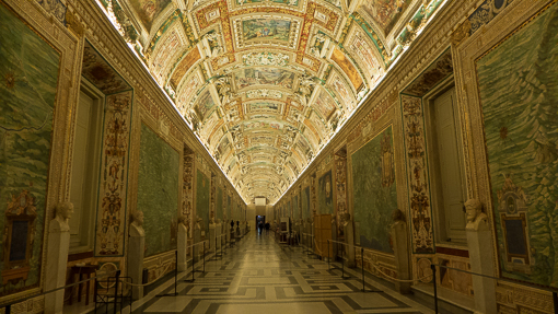 The Gallery of Maps contains a series of painted topographical maps of Italy based on drawings by friar and geographer Ignazio Danti.