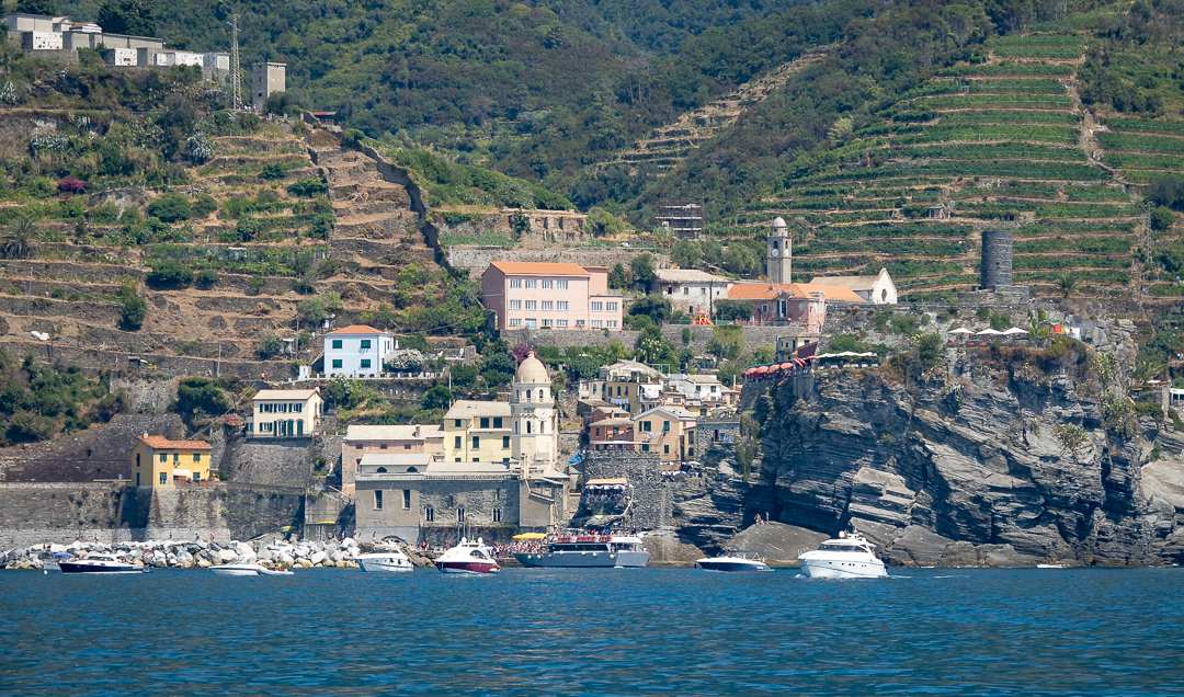 Vernazza was the second village we were going to visit in the Cinque Terre on that day. On approaching Vernazza, the terraces for growing grapes are visible behind the houses of the village, but not all of them were being maintained.