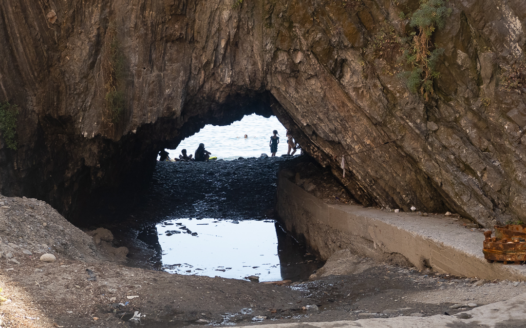 Through a natural hole in the rocks, one can get through to another beach on the other side of the village.