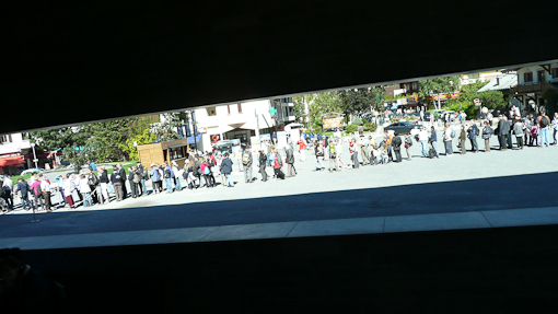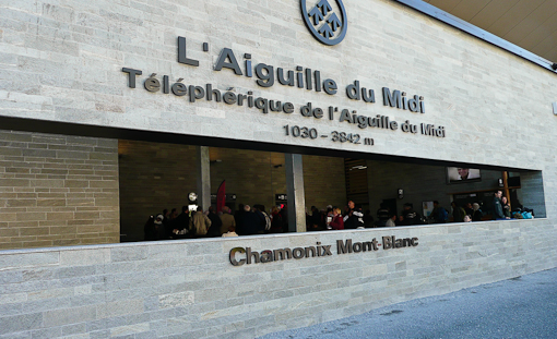 The weather of our first two days in Chamonix was lousy: overcast and rain resulting in zero visibility above 2,000m.  So there is no point to go up the mountains, instead we checked out all the souvenir stores, hiking equipment stores, cafes … in town.  The 3rd day was brilliant – we had cloudless blue sky.  The entire town of tourists had been waiting for good weather in the last 2 days just like us.