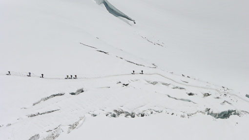 Just looking at the sheer ice cliff was vertigo inducing. I wondered if I can do this hike. The ridge was one person wide with a steep drop on either side.  The value of an ice axe cannot be underestimated here.