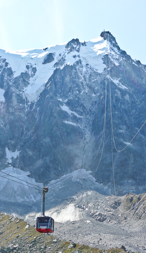 The must-see sight here is Mont Blanc which can be seen from one of the nearby peaks – l’Aiguille du midi (roughly translated as the Needle of Noon, the surrounding peaks are referred to as needles “Aiguilles”).