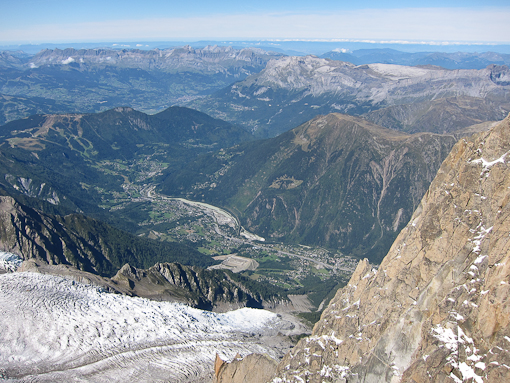Looking back during our ascent, this is a view of the entrance to the Chamonix Valley (photo below)
